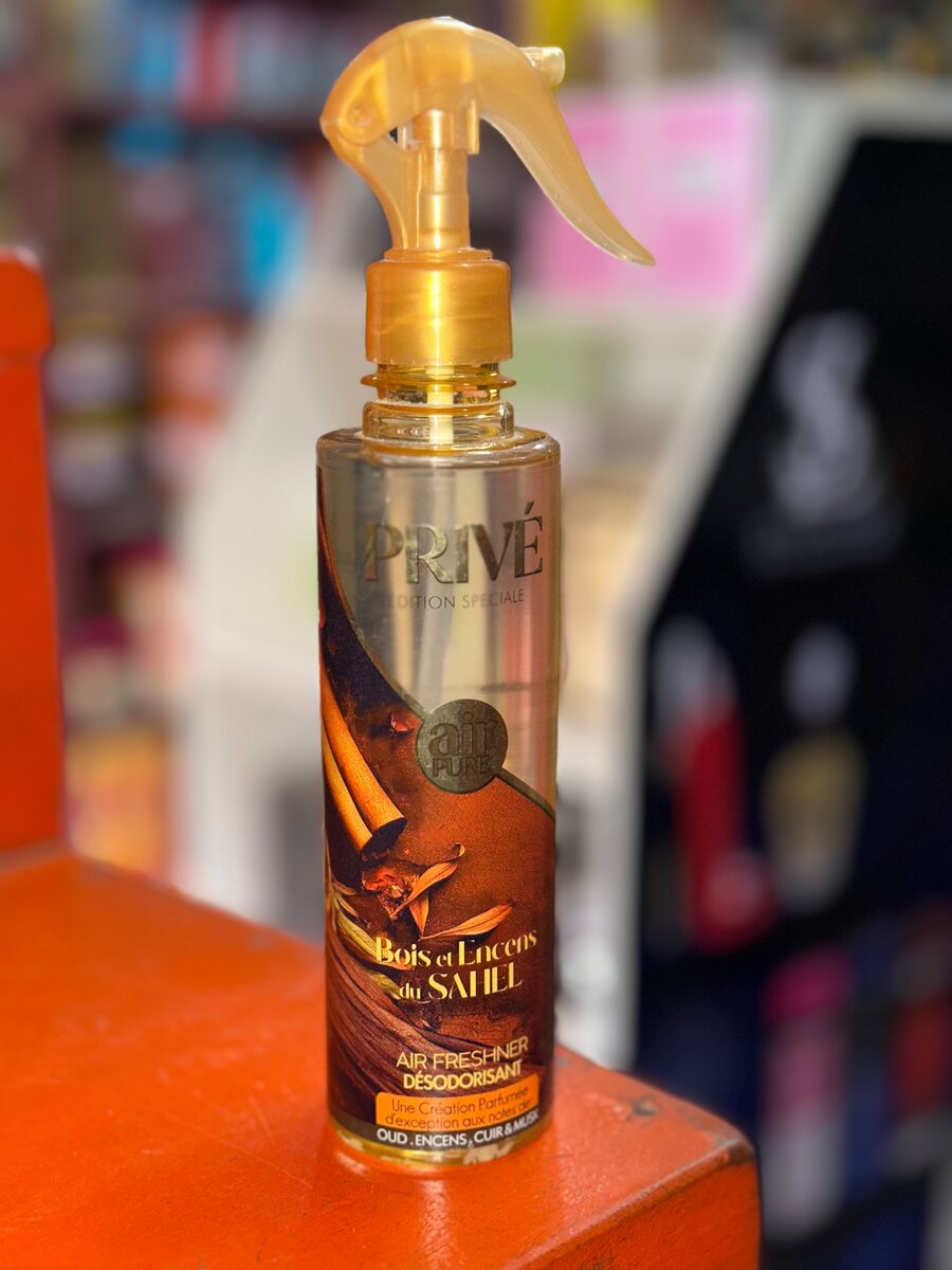 Découvrez le spray désodorisant Privé, idéal pour rafraîchir votre espace avec une senteur boisée. Parfait pour la maison ou la voiture, il élimine les mauvaises odeurs instantanément.