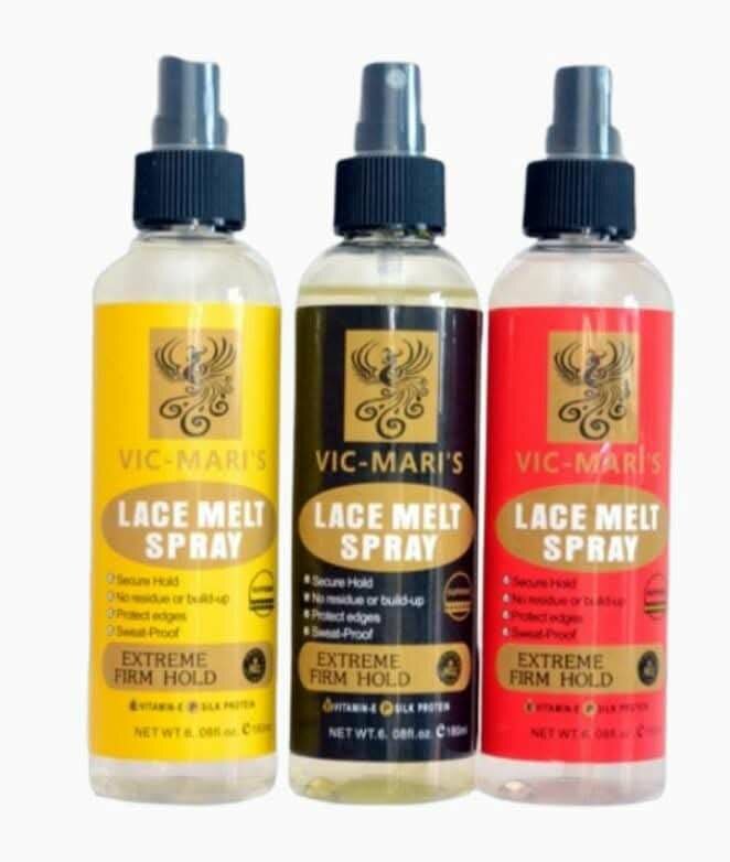 Vic-Mari's Lace Melt Spray offre une tenue extrême pour un maintien sécurisé de vos perruques. Sa formule résistante à la sueur et sans résidu assure un look naturel et sécurisé. Idéal pour une utilisation quotidienne, il est enrichi en protéines de soie pour protéger vos cheveux.