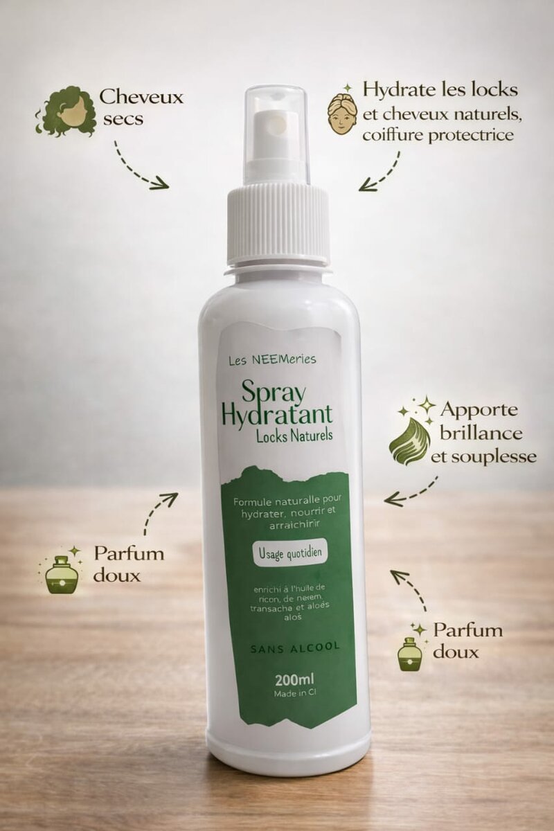 Enrichi pour hydrater les locks et coiffures naturelles, notre spray apporte brillance et souplesse à vos cheveux tout en préservant un cuir chevelu sain. Parfum doux et usage quotidien pour des résultats visibles.