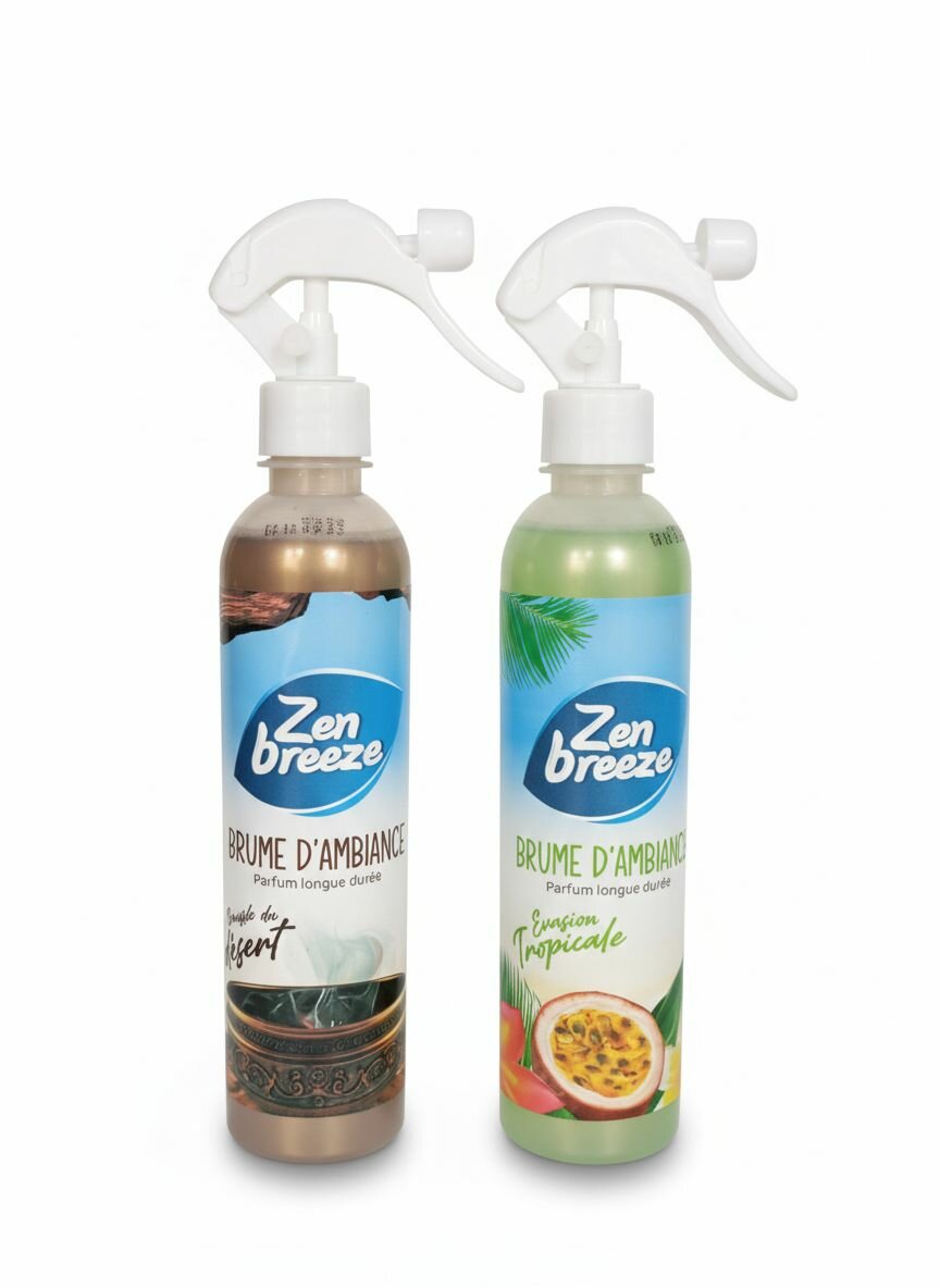 Découvrez les sprays d'ambiance Zen Breeze, parfaits pour créer une atmosphère apaisante chez vous. Disponible en plusieurs parfums tropicaux, chaque flacon promet une longue durée de parfum. Idéal pour ceux qui souhaitent transformer leur espace en un havre de tranquillité.