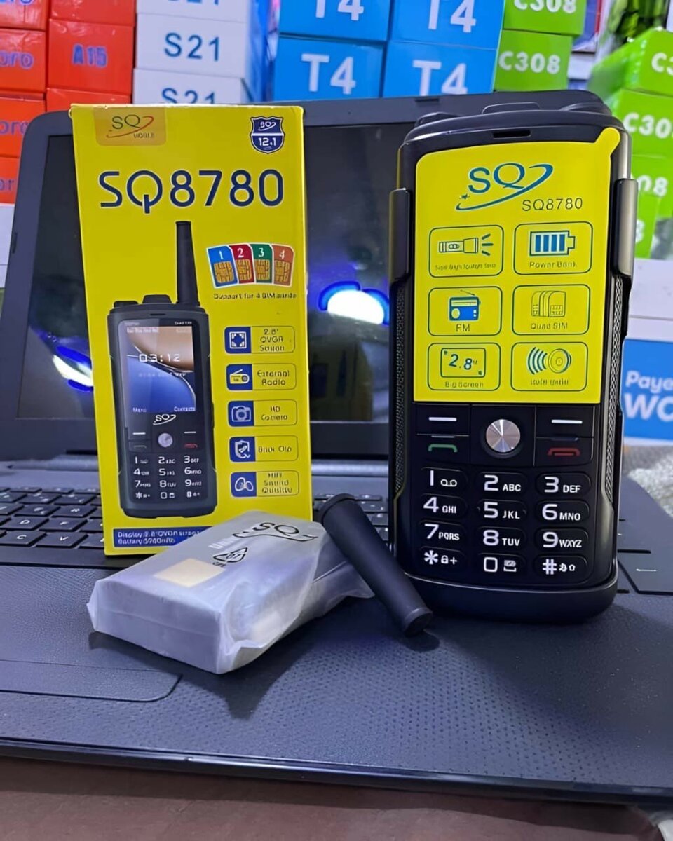 Le SQ8780 un téléphone portable robuste qui prend 4 SIM . Ce téléphone pourra être votre compagnon durant un mois sans le mettre en charge à cause de la performance de sa batterie qui fait 20000mAh en même temps powerbank et une antenne qui sert à capter le réseau dans les zones où la couverture réseau est faible, son haut-parleur vous rend heureux lorsque vous communiquez.