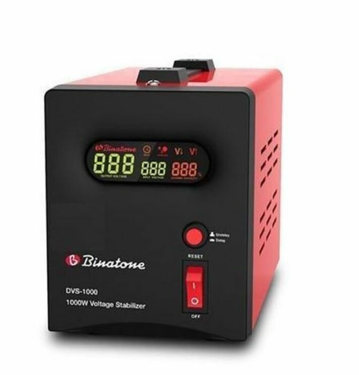 Stabilisateur de tension Binatone 1000W pour protéger vos appareils électroniques sensibles. Idéal pour la maison et le bureau, il assure une tension stable et fiable. Avec fonctions de reset et affichage numérique.