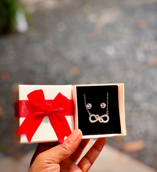 Infinity necklace with stud earrings