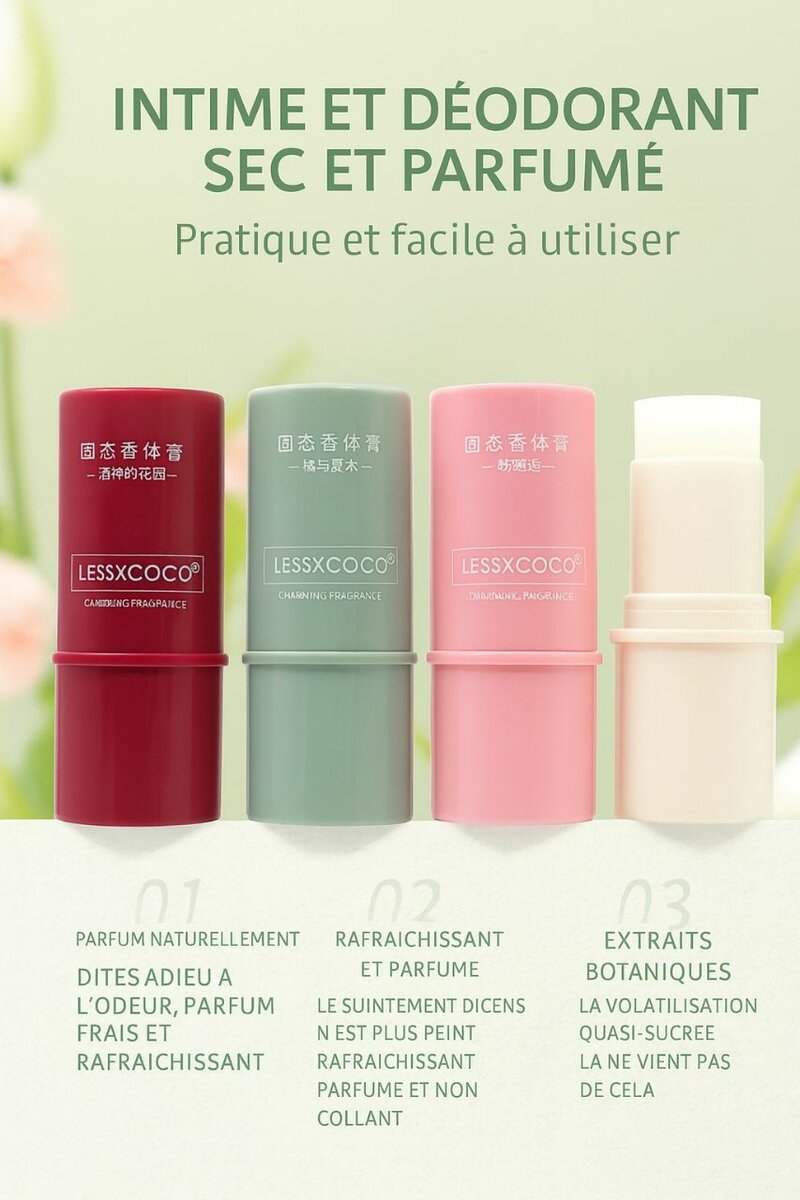 Parfum solide en stick LESSXCOCO une touche de fraîcheur à portée de main.