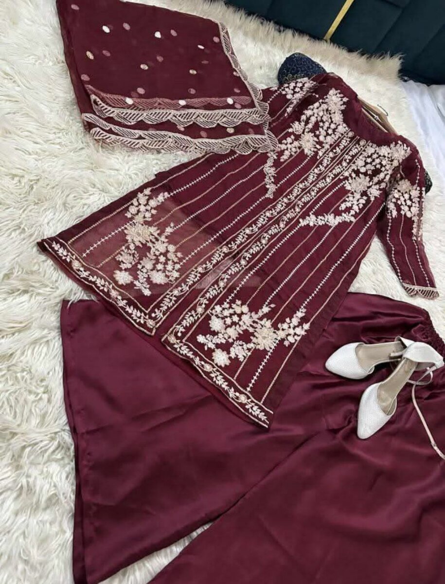 Embroidery maxi with dupatta 3 pc