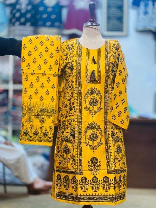 3 Pcs Woman's Stitched Katan Silk Embroidered Mirror Work