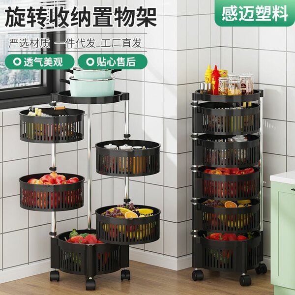 Stainless Steel Kitchen Storage Rotatable Shelf 3/4/5 Layers Vegetables and Fruits Storage Multi-layer Kitchen Island Wheeled Rack