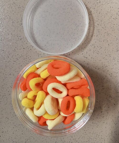 100pc in a container. Grab this beautiful kids stretchy cotton hair bands.