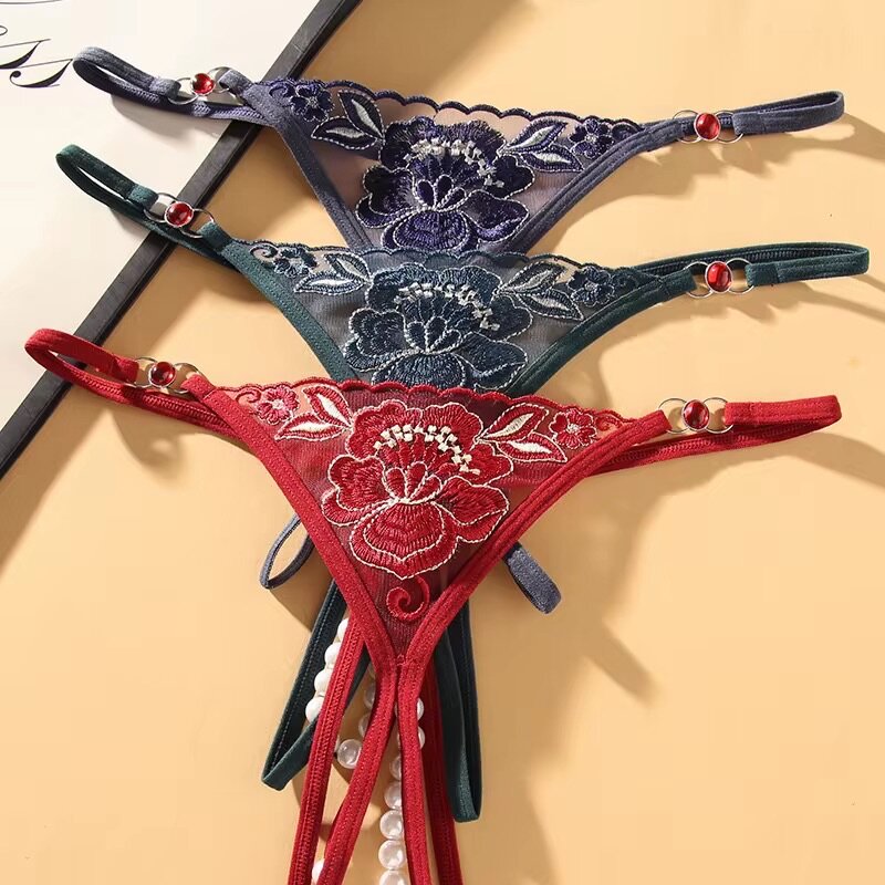 Découvrez notre string sexy ornée de délicate dentelle florale. Conçu pour séduire avec ses détails perlés, ce dessous est parfait pour des occasions spéciales. Confortable et élégant, il met en valeur votre silhouette séductrice. Idéal pour un cadeau romantique ou pour pimenter votre garde-robe intime.