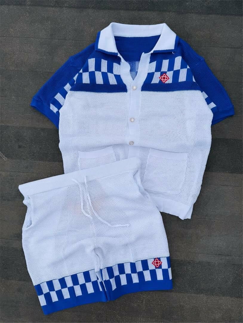 Rehaussez votre garde-robe avec cet ensemble en tricot chic, composé d'un haut boutonné à manches courtes et d'un short assorti. Parfait pour les sorties décontractées et les week-ends de détente. Fabriqué à partir d'un tissu respirant, assurant confort et style. Idéal pour les femmes avant-gardistes à la mode à la recherche d'un look polyvalent et tendance.