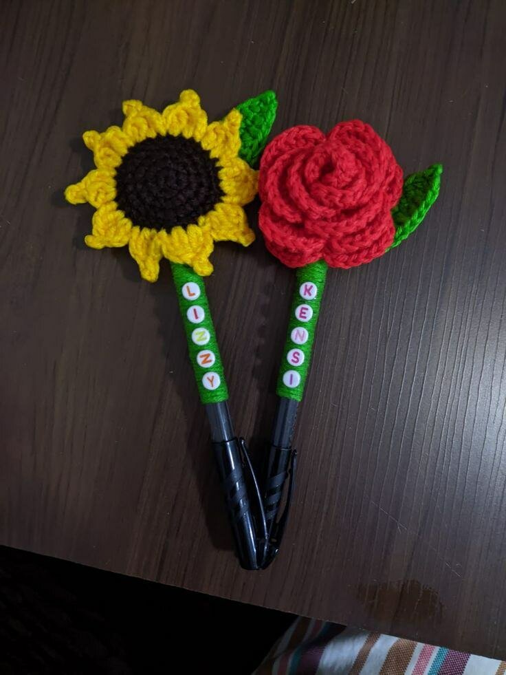 Ajoutez une touche artistique à votre bureau avec ces stylos ornés de fleurs crochetées. Parfaits pour les cadeaux ou pour embellir votre espace de travail, ces stylos sont aussi fonctionnels qu'esthétiques. Idéal pour les amateurs de papeterie et les passionnés de crochet.