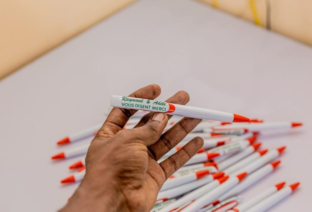 Stylos personnalisés avec message 'Merci'. Idéal pour événements, mariages ou promotions. Encre fluide, design élégant. Parfait pour remercier vos invités!