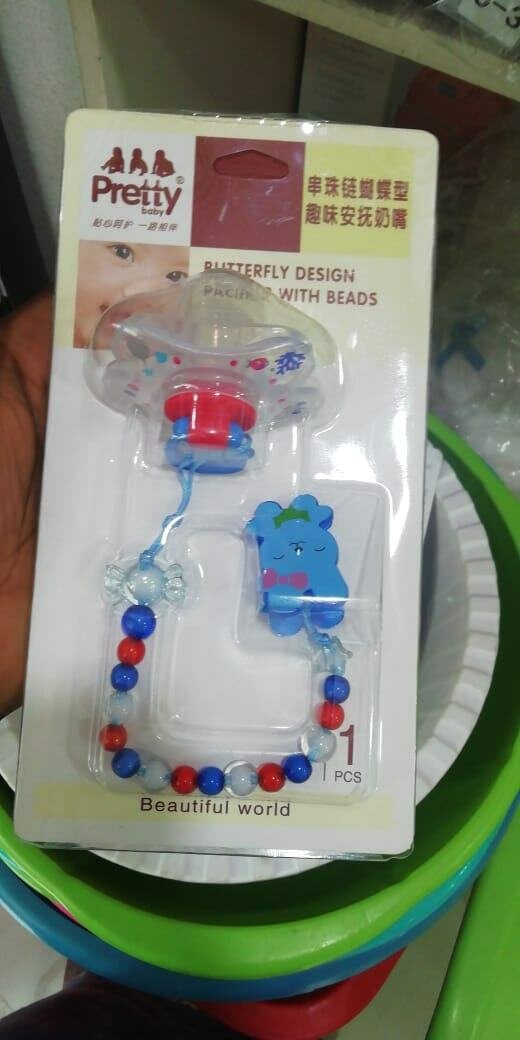 Jolie sucette avec design papillon et chaîne de perles colorées. Parfaite pour le confort des bébés. Idéale pour éviter la chute des sucettes. Convient aux nourrissons.