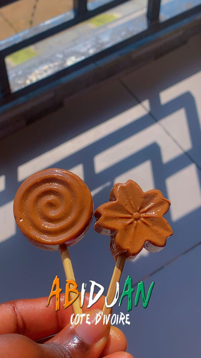 Découvrez nos sucettes en chocolat faits main, une gourmandise parfaite pour les amoureux de douceurs. Fabriquées en Côte d'Ivoire, elles allient design et saveur, idéales pour offrir ou se faire plaisir.