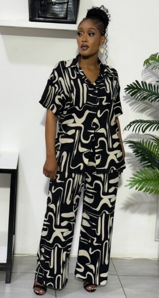 Women's set, long-sleeved shirt and trousers in black and white print M-3xl