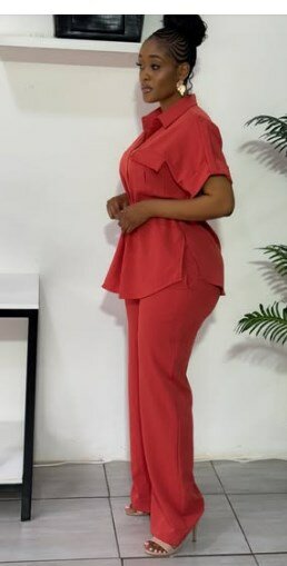 Women's orange suit, short-sleeved shirt and pants S-2xl
