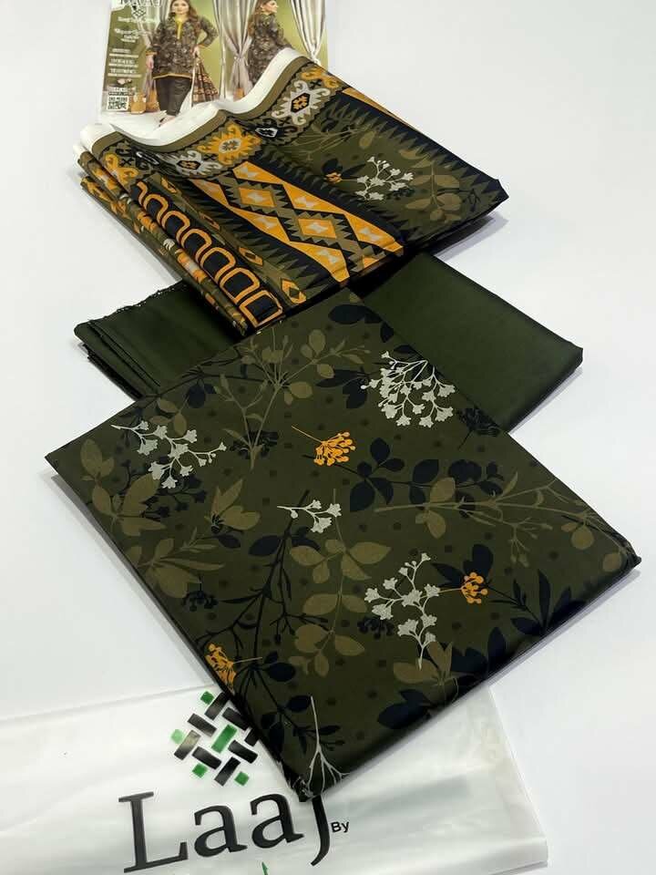 Laaj vol 2 original stock Lawn 3pc air jet kinari 100/100 lawn air jet kinari Digital printed lawn shirt Digital printed voil duppaatta Air jet kinari trozr
