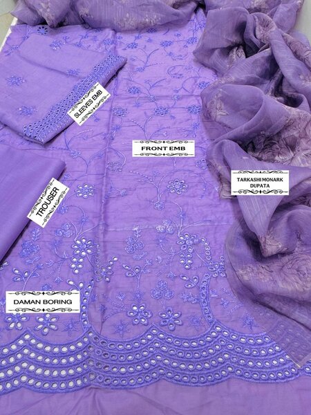 *_SUMMER COLLECTION _* *ALHAMDULILAH* *BAREEZE* 3pc Summer Casual Collection Code:ff *LAWN AIR JET BEST WORLD CLASS QUALITY STUFF* front Full Emb Bamber Emb Dupata Seleeves Emb back emb Dyed trouser