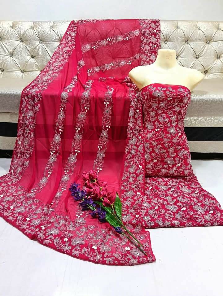 Beautifull Kacha Tanka With Mirror Hand Embroidery Work Collection 2Pc ( Shirt & Dupatta ) Stuff:- Pure Soft Bembar Chiffon With Free Delivery in Pakistan For More Details Contact