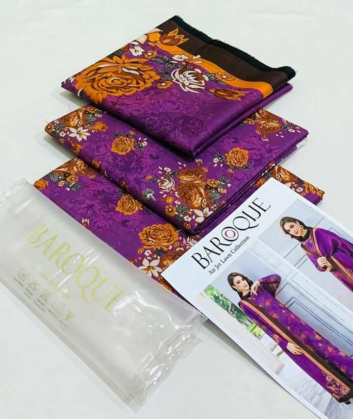 BAROQUE BRAND Printed lawn allover shirt Printed lawn trouser & lawn printed dupatta 10 designs outclass Fabric garunty