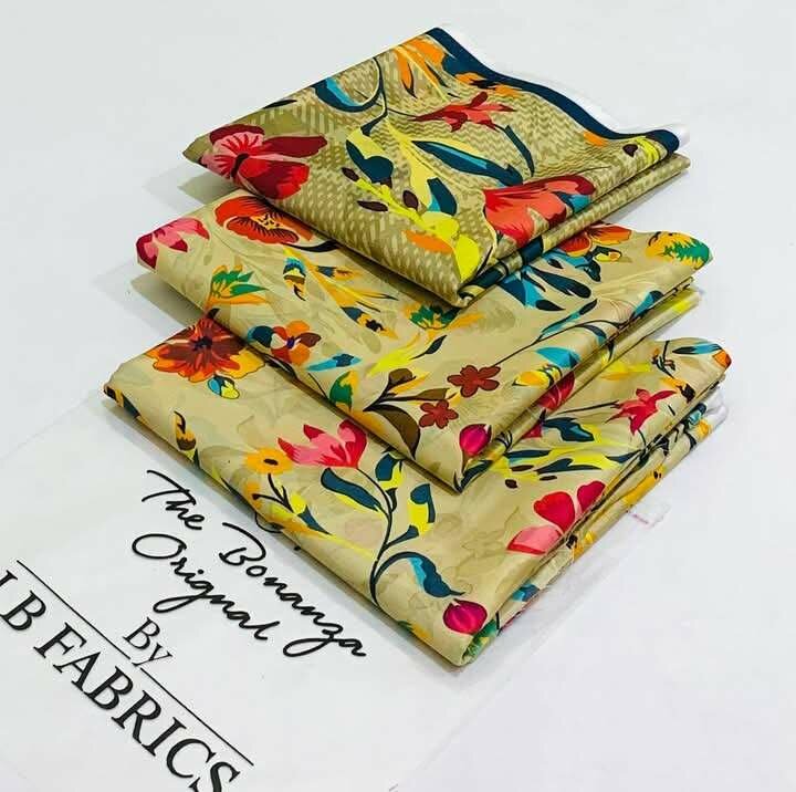 BONANZA BRAND Printed lawn allover shirt Printed lawn dupatta Printed lawn trouser 10 piece in one set Single suit available Stuff & collour garunted