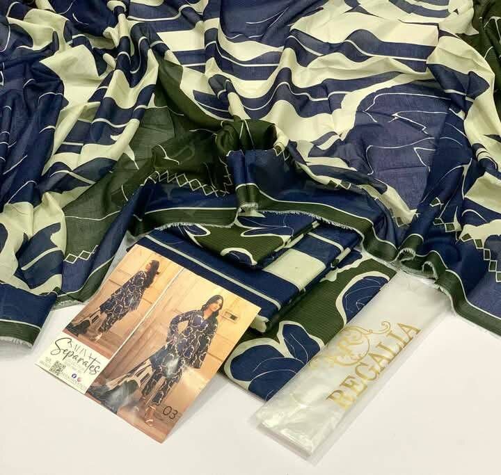 SUMMER COLLECTION REGALIA* Original Hit Vol 3Pc Printed in Summer Collection ️LAWN BEST QUALITY STUFF ️Front Full Printed ️Back & Seleeves Printed ️Printed Trouser ️Printed Lawn Dupata ️10 Beautiful Desing