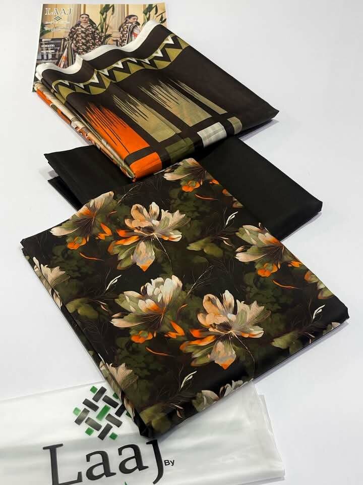 Laaj vol 2 original stock Lawn 3pc air jet kinari 100/100 lawn air jet kinari Digital printed lawn shirt Digital printed voil duppaatta Air jet kinari trozr