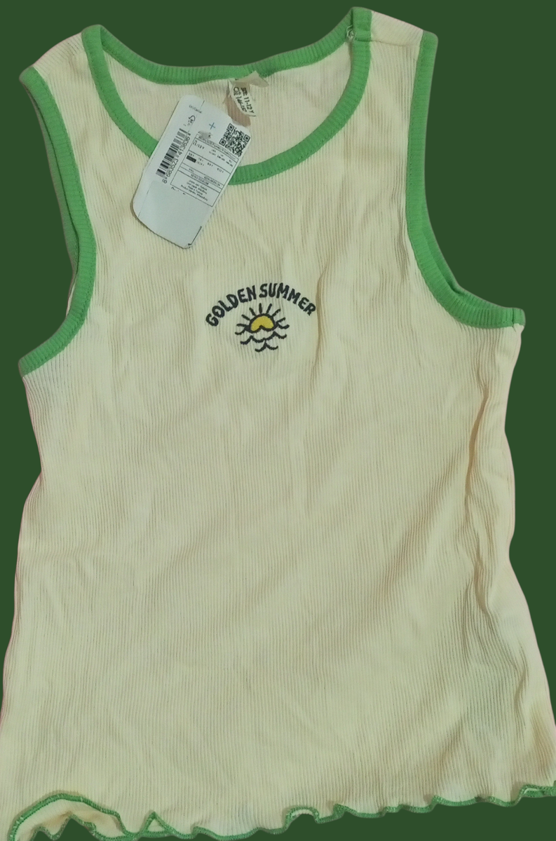 Stay cool and stylish with this 'Golden Summer' tank top. Perfect for warm days, featuring green trim and a playful sun design. Ideal for casual outings or beach trips.