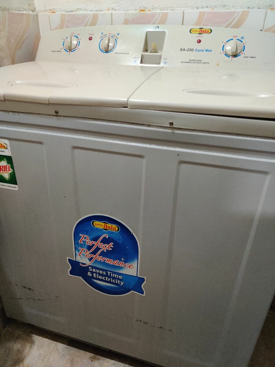 SUPER ASIA 10KG TWIN TUB Specifications: Washing Capacity: 9kg Spinning Capacity: 9kg Rust Proof Painted Body Double Strom Pulsator Heavy Gear Technology Power Full Copper Motor Quick Spinning Automatic Water Balancing Ring Energy Saving