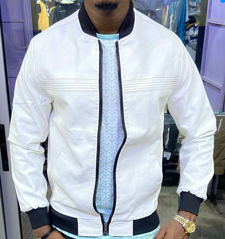 Blouson en cuir blanc homme