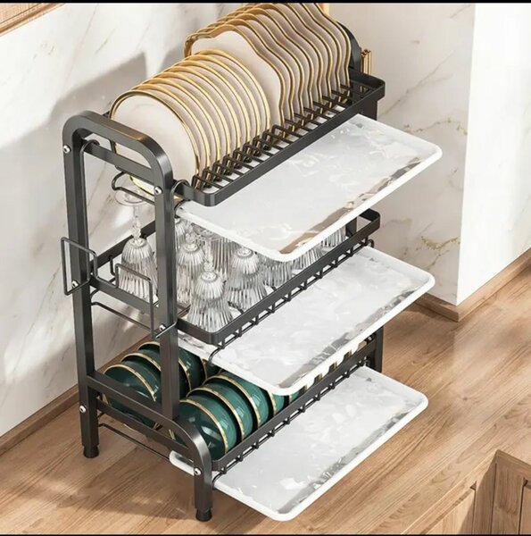 Egouttoir à vaisselle à 3 niveaux en acier inoxydable.
