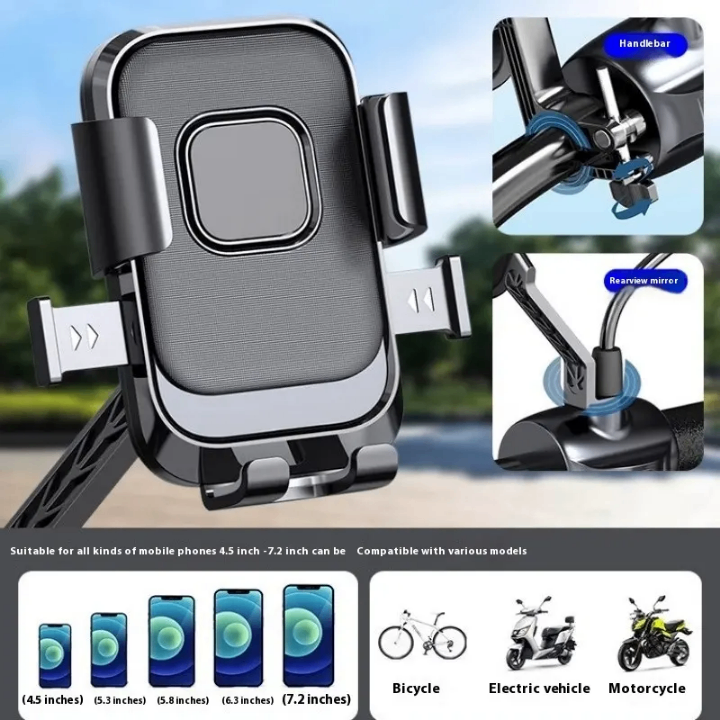 Idéal pour vélo, moto ou véhicule électrique, ce support de téléphone s'adapte aux appareils de 4,5 à 7,2 pouces. Installation facile sur guidon ou rétroviseur. Solide et ajustable, il assure la sécurité de votre appareil en mouvement.
