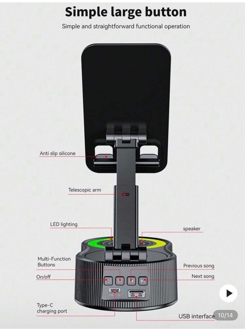 Découvrez ce support de smartphone avec haut-parleur rotatif à 360°. Parfait pour votre bureau, il combine éclairage LED RGB et charge portable. Idéal pour écouter de la musique tout en travaillant ou regardant des vidéos. Transformez votre espace avec cet accessoire innovant, conçu pour le confort et la multifonctionnalité.