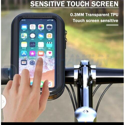 Support de téléphone vélo XL avec écran tactile transparent et étanche. Idéal pour GPS et suivi d'activité. Compatible avec smartphones jusqu'à 177x95mm. Parfait pour les cyclistes passionnés de technologie.
