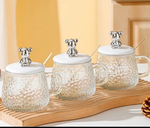 Tasses en verre avec couvercle ours