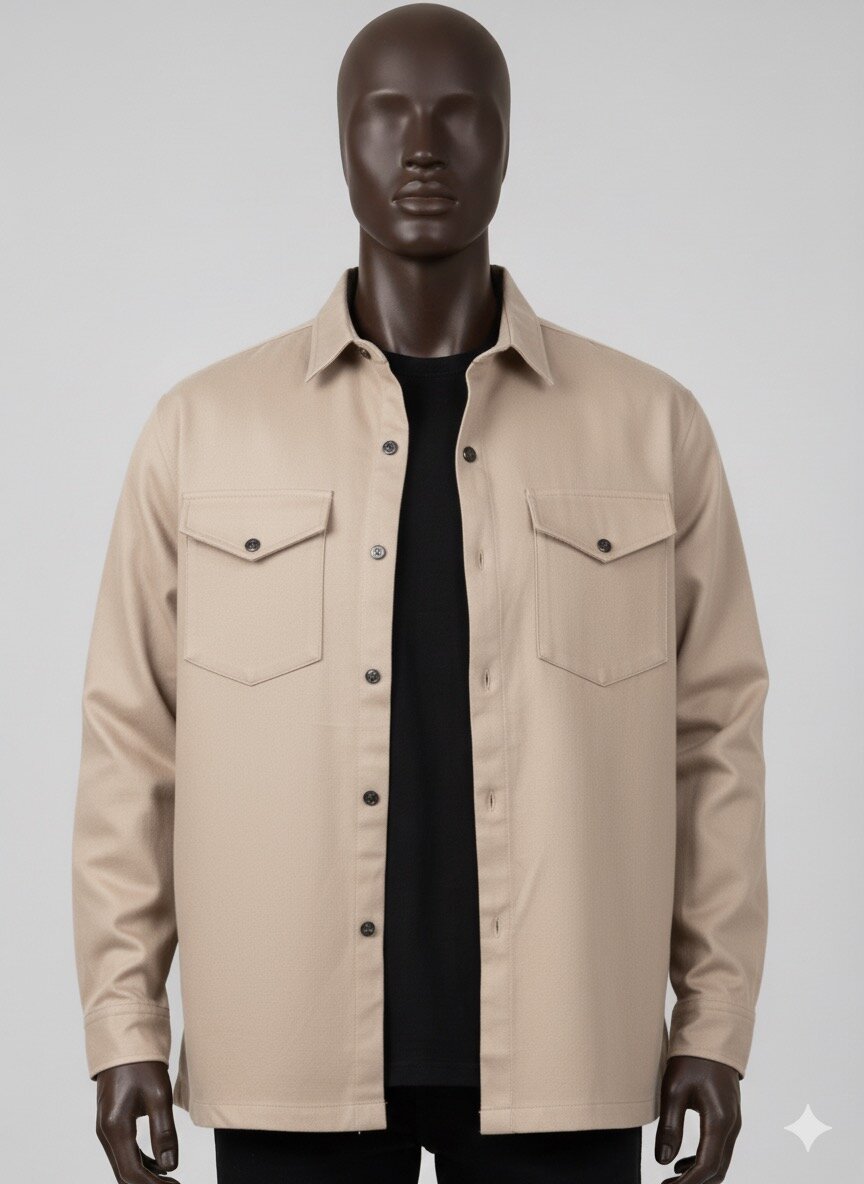 Découvrez cette surchemise beige élégante pour homme, parfaite pour une allure chic et décontractée.