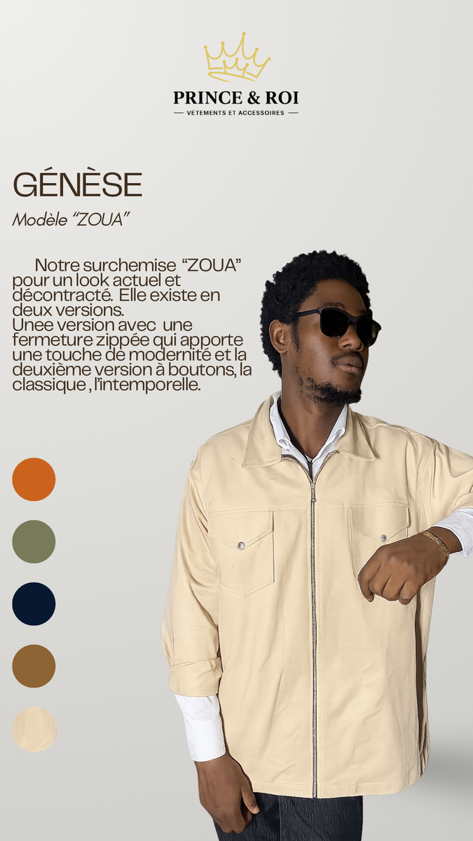 Style moderne et décontracté avec la surchemise "ZOUA". Disponible en version zip ou bouton pour une touche intemporelle. Idéale pour un look casual et chic!