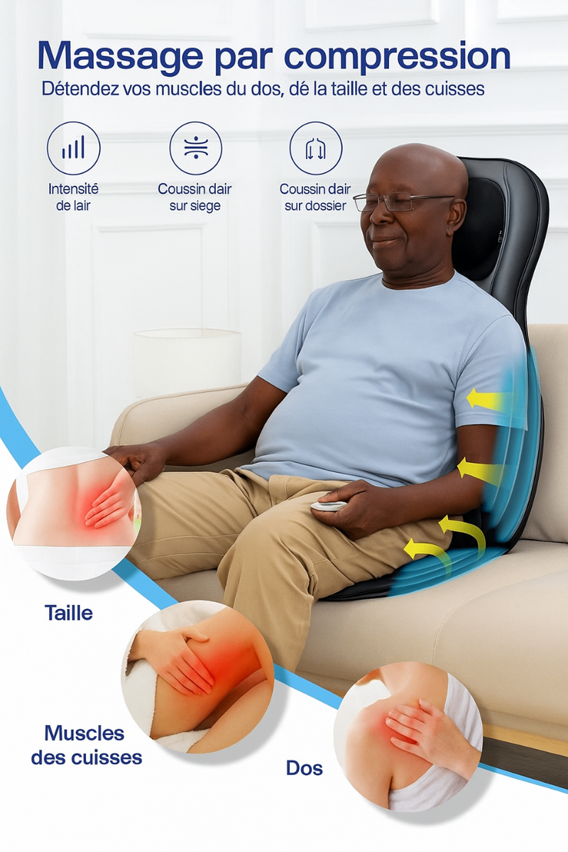 Détendez-vous avec le coussin de massage Shiatsu 2D/3D. Parfait pour soulager le stress dans le dos et les cuisses. Idéal pour la maison après une longue journée.