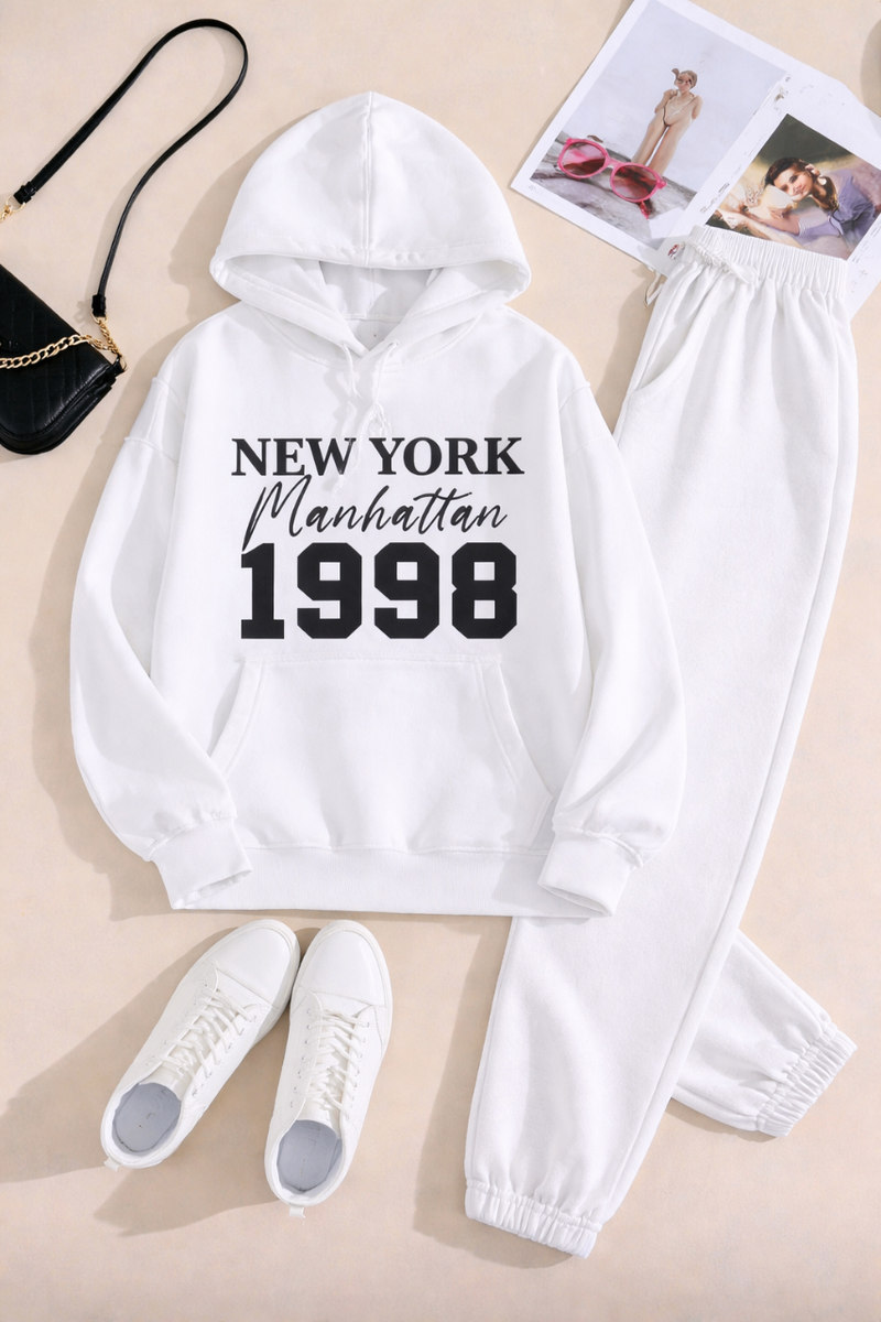 Ensemble de survêtement élégant avec un sweat à capuche et un pantalon assorti. Idéal pour un style décontracté, ce modèle est orné d'un imprimé tendance. Conçu pour un confort optimal, il est parfait pour les sorties ou les moments de détente à la maison. Disponible en différentes couleurs et motifs pour s'adapter à votre style unique.