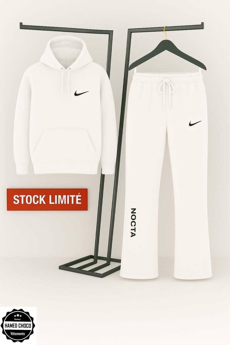 Découvrez notre survêtement blanc, parfait pour un look casual et sportif. Comprenant un hoodie et un pantalon, il est idéal pour le confort au quotidien ou lors de vos séances de sport. Sa conception de qualité assure durabilité et style.
