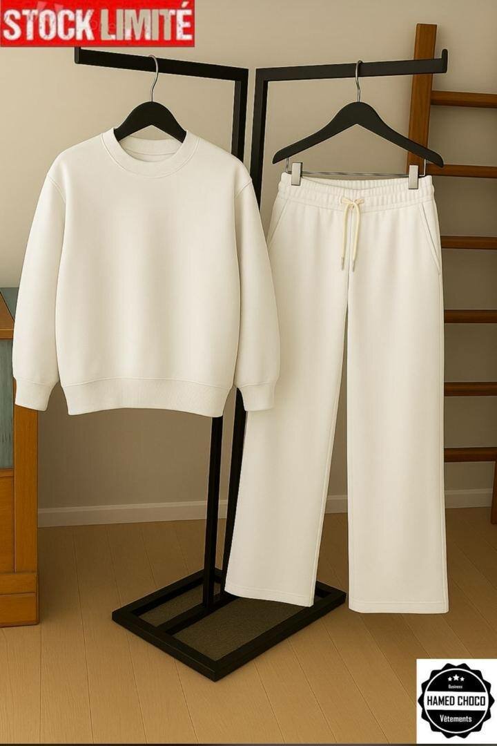 Ce survêtement blanc est l'allié parfait pour le confort au quotidien. Conçu pour être à la fois élégant et décontracté, il est idéal pour les moments de détente ou les sorties décontractées. Composé de matériaux doux et respirants, il offre une sensation agréable sur la peau. Le choix parfait pour un look simple et stylé à la maison ou en déplacement.
