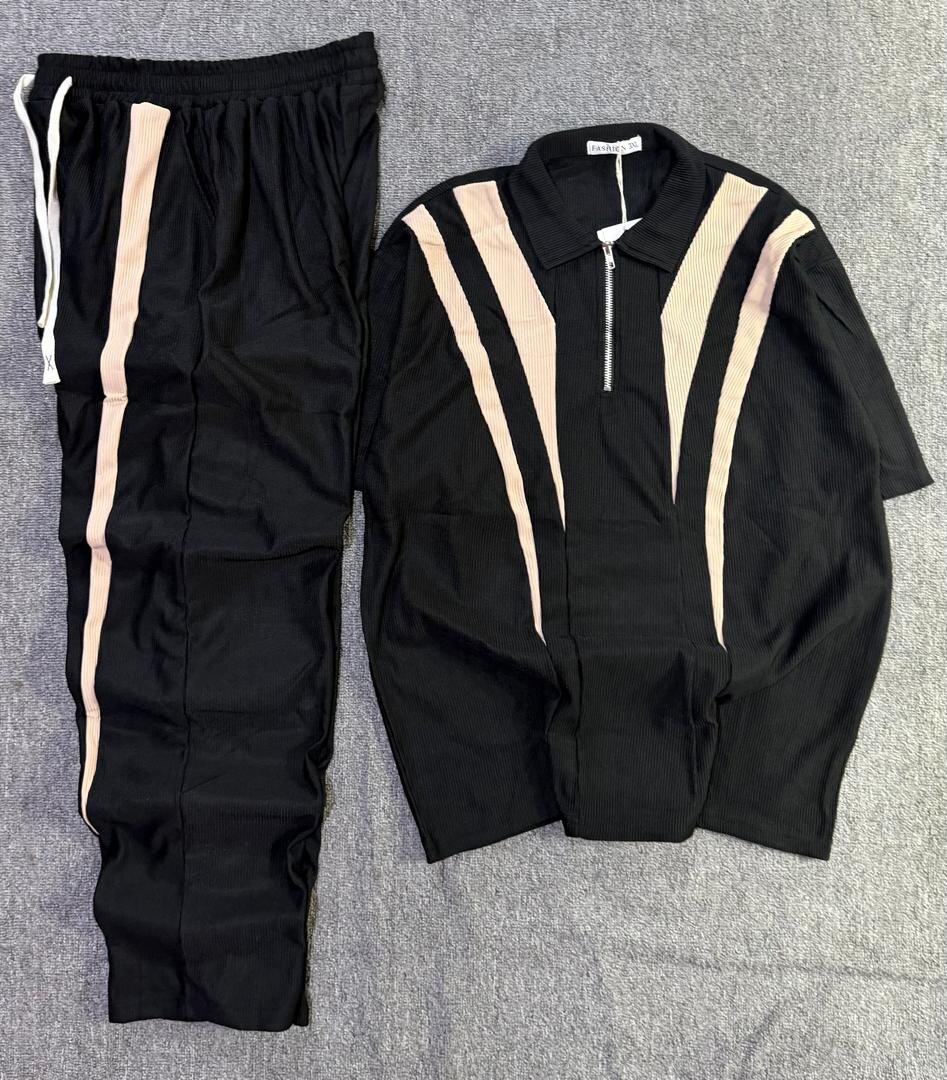 Ce survêtement noir, élégant et confortable, est parfait pour le sport ou un look décontracté. Conçu avec des bandes contrastées, il offre style et praticité. Idéal pour les activités quotidiennes ou pour se détendre à la maison.