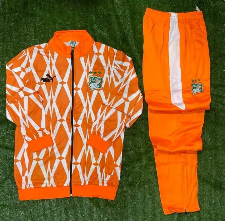 Ce survêtement de football pour enfant est idéal pour les jeunes fans du sport. Avec son design dynamique en orange et ses emblèmes, il promet confort et style. Parfait pour l'entraînement ou la détente sportive.