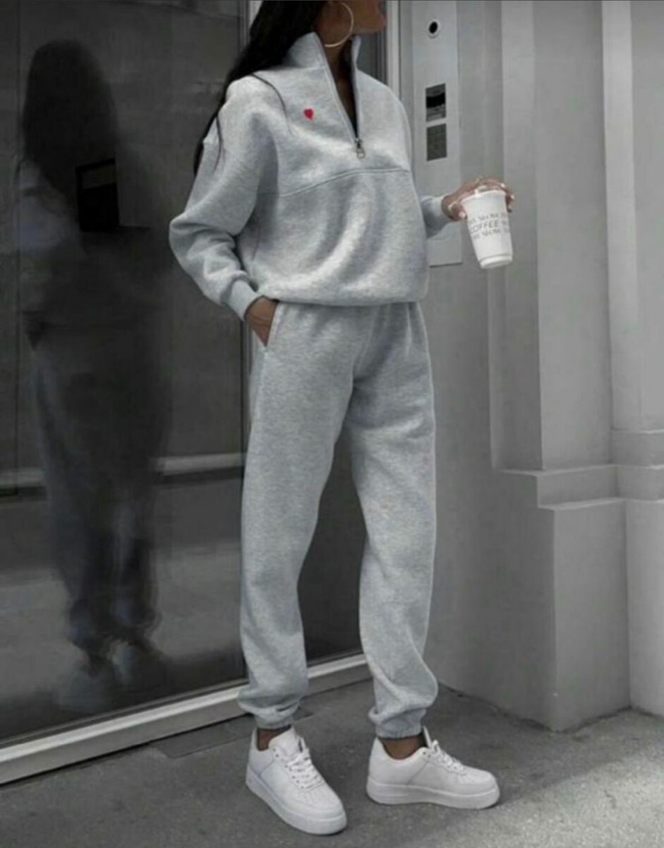 Adoptez un look confortable avec ce survêtement gris. Confectionné dans un tissu doux et respirant, idéal pour les journées décontractées ou les loisirs actifs. Parfait pour sortir ou se détendre chez soi.