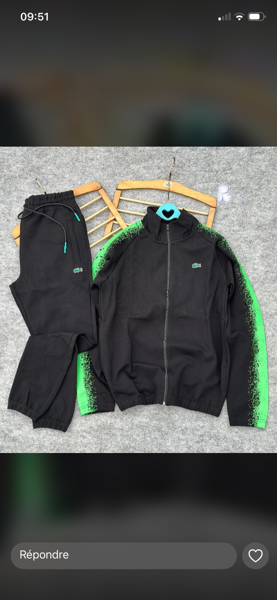 Découvrez notre survêtement pour homme alliant confort et style. Parfait pour le sport ou la détente, il se compose d'une veste zippée et d'un pantalon assorti. Confectionné dans des matériaux de qualité, ce survêtement présente des détails modernes en vert qui le rendent unique. Idéal pour un look sportif et moderne au quotidien.