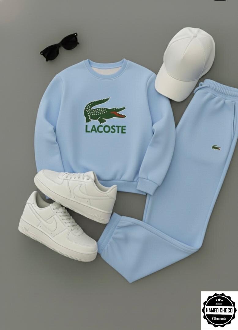 Optez pour le confort et le style avec ce survêtement Lacoste bleu. Parfait pour le sport ou les sorties décontractées, il offre une qualité supérieure et un design élégant. Complété avec une casquette assortie et des baskets blanches, il est idéal pour les amateurs de mode.