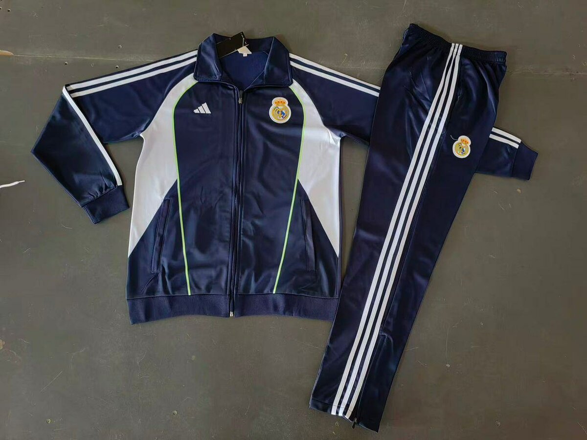 Découvrez cet élégant survêtement aux couleurs du Real Madrid, idéal pour les entraînements et les activités sportives. Fabriqué en polyester de haute qualité, il offre confort et liberté de mouvement. Parfait pour les fans du club, ce set est indispensable pour afficher votre soutien lors de vos séances de sport.
