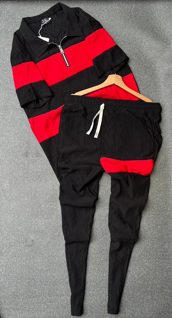 Optez pour ce survêtement élégant et confortable, idéal pour le sport ou le quotidien. Le design contrasté en noir et rouge offre une touche moderne, tandis que le matériau doux assure confort et mobilité. Parfait pour les amateurs de mode active.