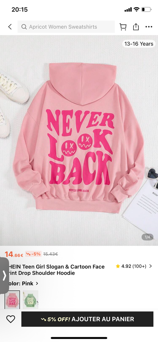 Optez pour ce sweat à capuche rose vibrant avec un message inspirant "Never Look Back". Parfait pour les adolescentes, il offre confort et style pour toutes les occasions décontractées. Fabriqué en matériaux doux et résistants, il est idéal pour l'école ou les sorties entre amis.