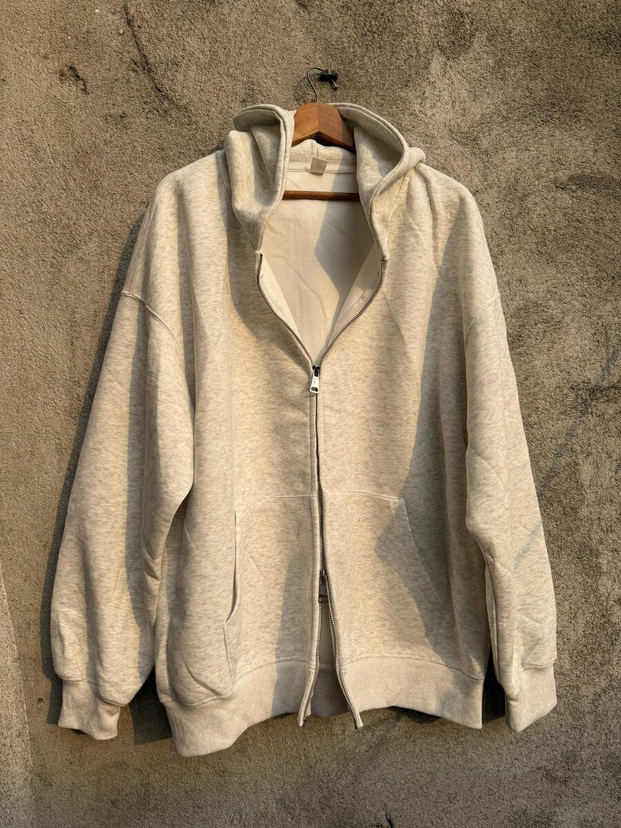 Sweat-shirt à capuche beige avec fermeture éclair, confortable et élégant, idéal pour les activités quotidiennes ou les soirées décontractées. Conçu pour offrir un maximum de confort avec son tissu doux et sa coupe ample.